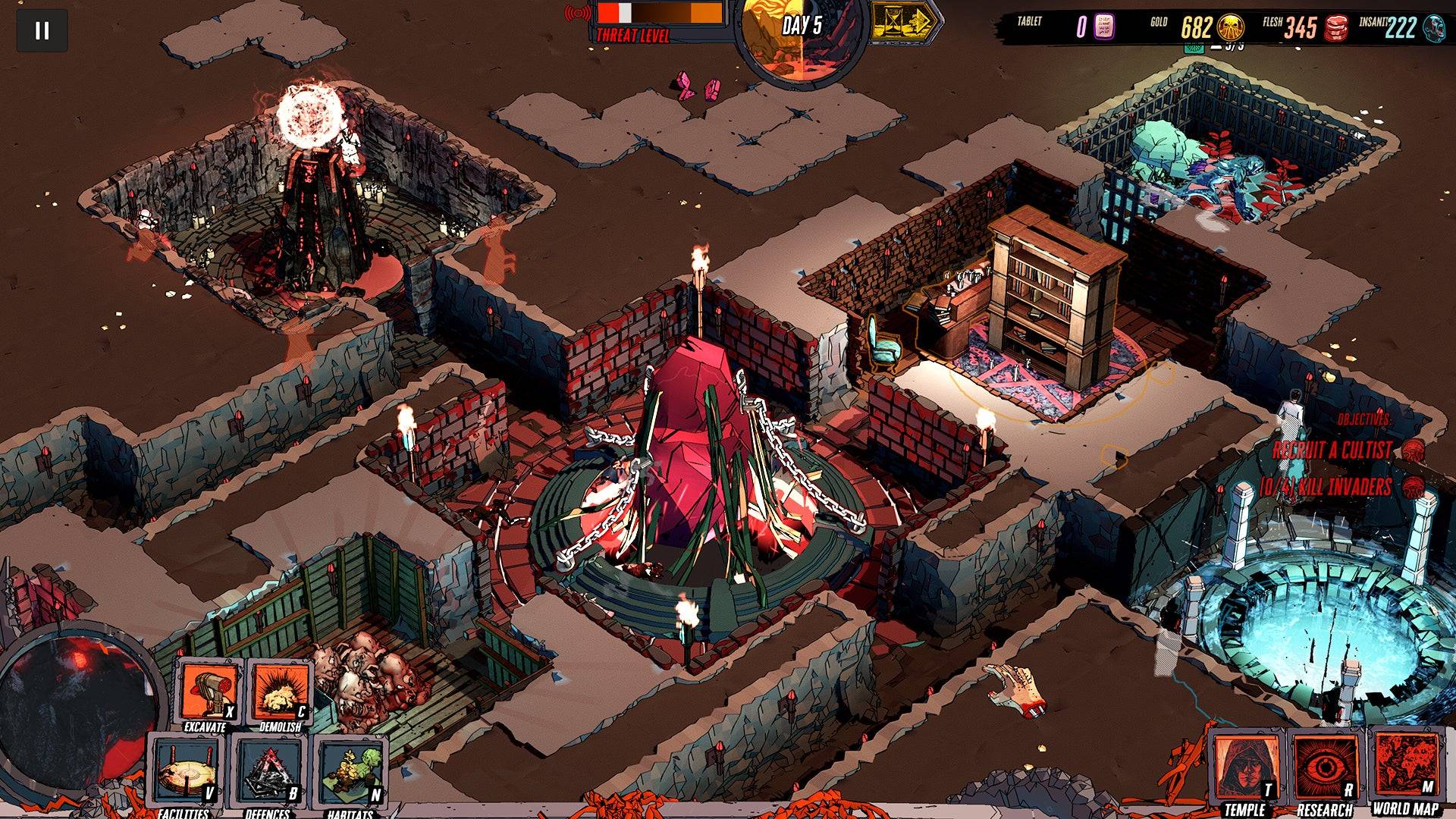 Die Spieler werden ihren eigenen Kult etablieren und erweitern und Angst und Chaos säen. Das Gameplay spielt in den 1920er Jahren und beinhaltet den Bau eines Versteckes, die Erforschung verbotener Kunst und die Beschwörung von Lovecraftian -Monstern. Die Expansion wird durch Rekrutierung von Kultisten, die Proselytisierung auf Straßenebene erreicht und Ziele vervollständigen. Natürlich werden konkurrierende Kulte und die Behörden eine Bedrohung darstellen und die Verwendung von Fallen und Zaubern zur Verteidigung Ihrer Domäne erforderlich machen.