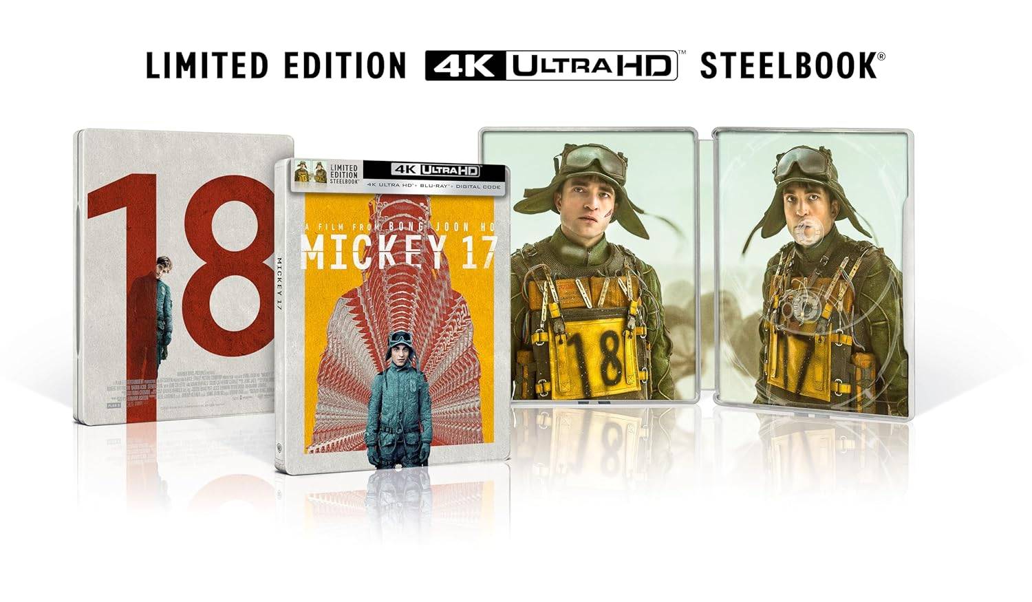 Bong Joon-Hos neuestes filmisches Meisterwerk "Mickey 17" mit Robert Pattinson in der vielfältigen Rolle von Mickey ist jetzt in physischen Formaten vorbestellt. Wenn Sie einen Teil dieses Films besitzen möchten, nachdem Sie ihn in den Kinos erlebt haben, können Sie sich ein 4K-Stahlbuch für 39,99 US-Dollar, eine Standard-4K-Version für 34,99 US-Dollar, sichern oder sich für die Blu-ray bei 29,99 US-Dollar entscheiden. Obwohl ein offizielles Veröffentlichungsdatum noch nicht bekannt gegeben wurde, stellt die Vorbestellung jetzt sicher, dass Sie nicht verpassen werden, wenn die Details abgeschlossen sind.
