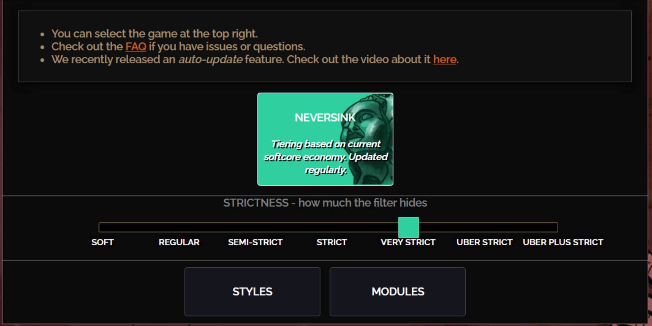 Das Neversink Filterblade Preset bietet sieben Ebenen an Strenge, die jeweils auf verschiedene Phasen Ihres Gameplays zugeschnitten sind. Die Auswahl des richtigen Niveaus ist entscheidend, da er feststellt, welche Elemente im Spiel sehen werden. Während Sie immer Ausnahmen machen können, kann der Beginn mit der entsprechenden Strenge zukünftige Probleme verhindern.
