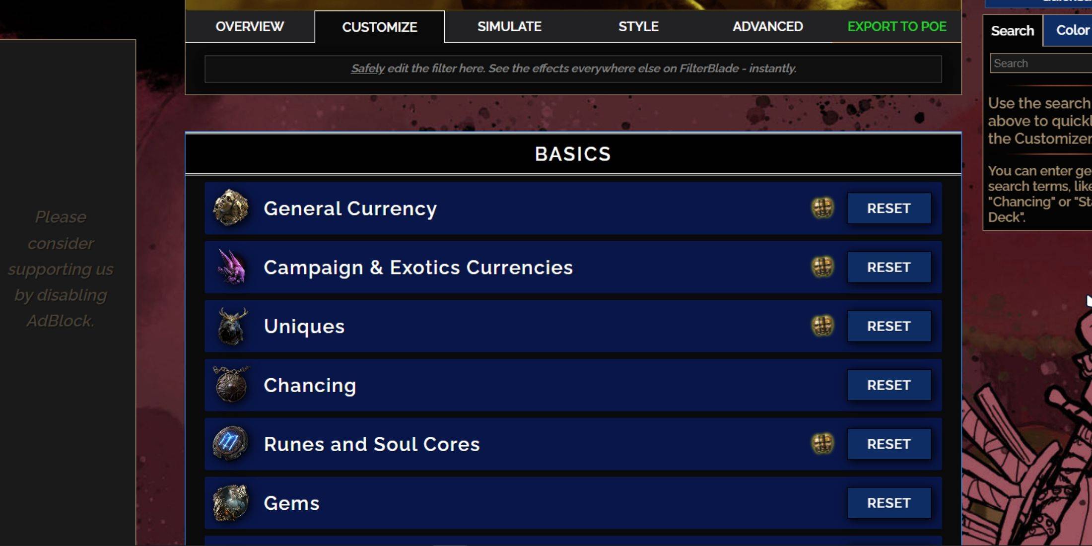 Filterblade, die für seine Effektivität auf dem Weg von Exil 1 bekannt ist, wurde nun aktualisiert, um Poe zu unterstützen.