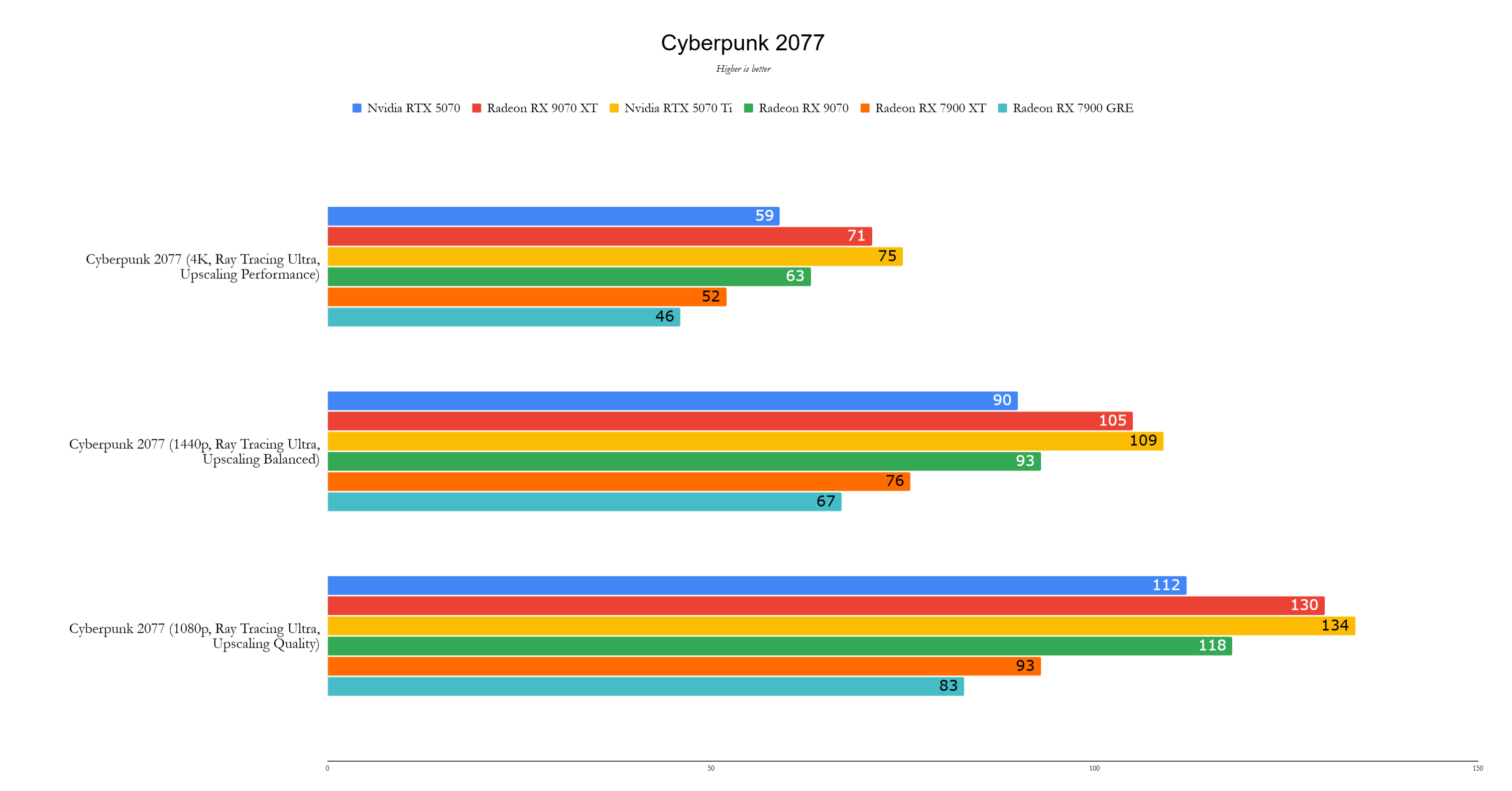 Während meiner Überprüfung des AMD Radeon RX 9070 XT erwartete ich, dass es den RTX 5070 TI, insbesondere in Ray-Traced-Spielen, genau verfolgen würde. Überraschenderweise blieb der RX 9070 XT, selbst in anspruchsvollen Titeln wie Cyberpunk 2077, nur wenige Frames hinter dem RTX 5070 TI.