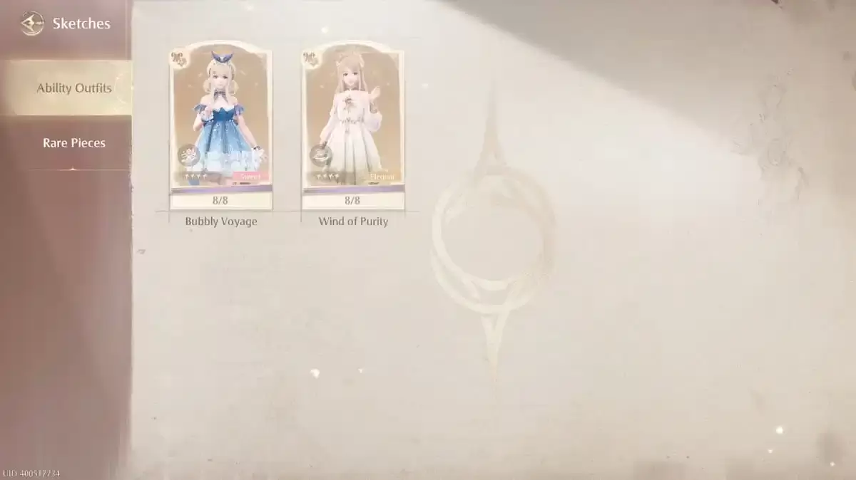 Rappelez-vous : les Whimstars sont nécessaires pour débloquer des croquis de tenues. Accédez au Cœur de l'Infini (touche I), sélectionnez le croquis souhaité et échangez-le contre des Whimstars. Ensuite, ouvrez le menu Croquis (touche Y), choisissez votre tenue et fabriquez-la en utilisant les matériaux nécessaires.