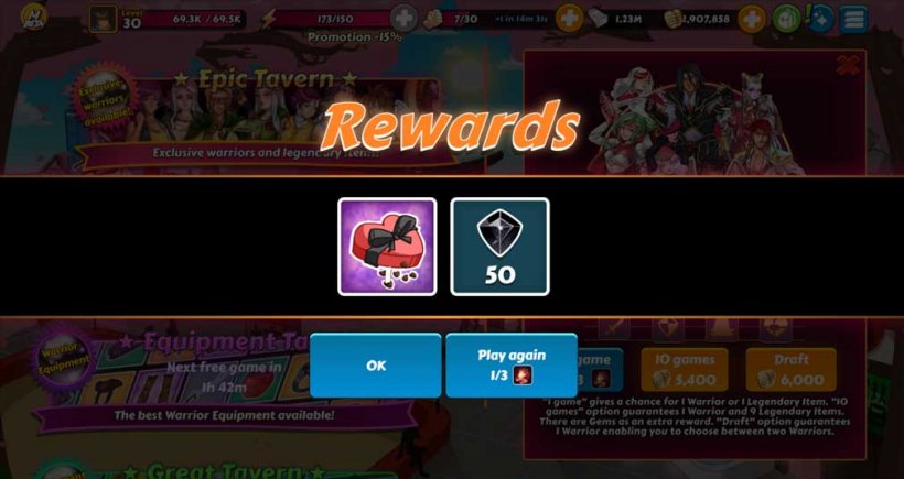 MangaRPG propose un système gacha dans la Taverne, vous permettant de recruter une liste diversifiée de personnages hauts en couleur. Testez la force de votre équipe dans des batailles quotidiennes en dehors de la campagne principale et gagnez de précieuses récompenses pour améliorer vos héros et votre équipement.