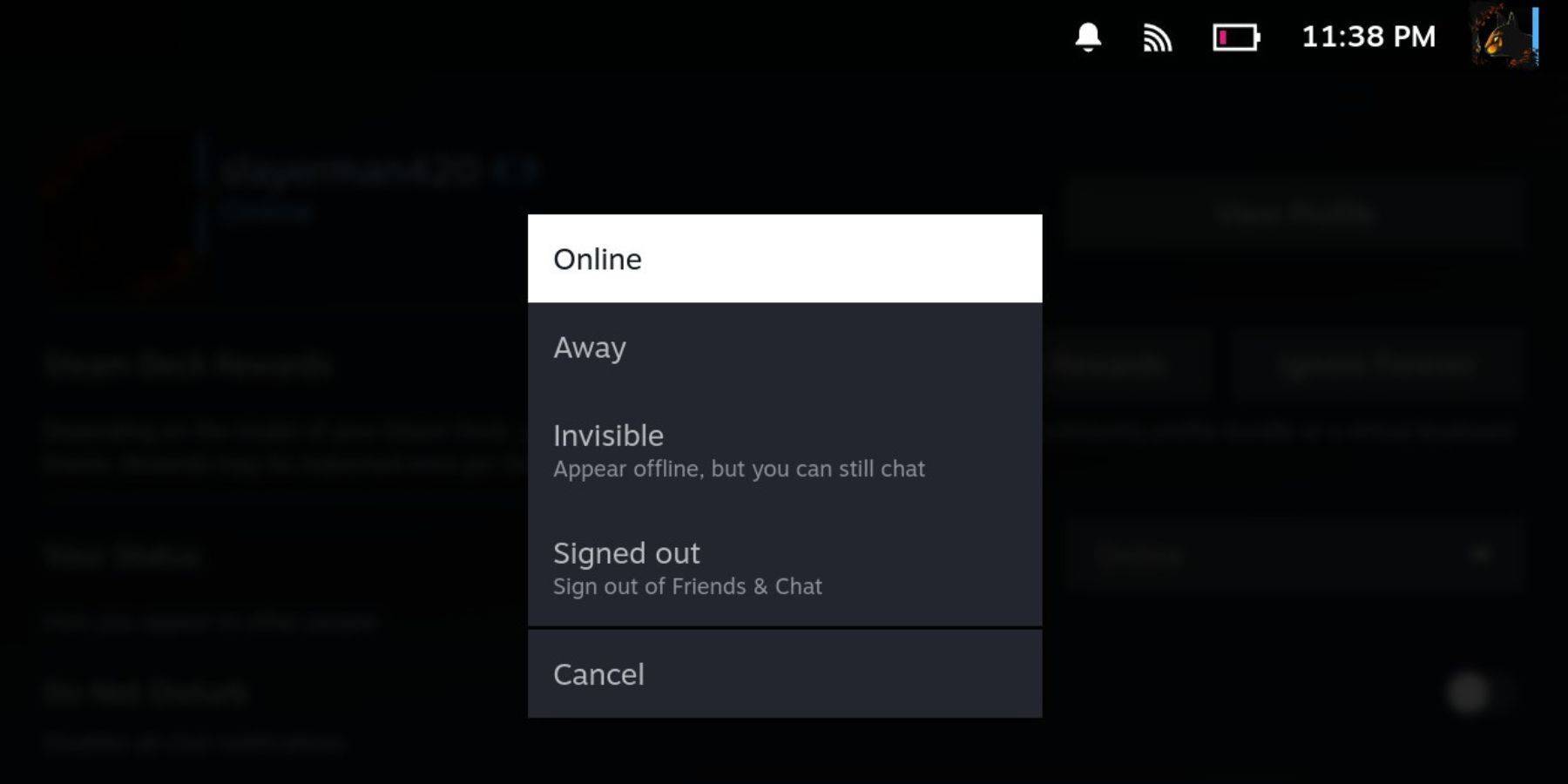 Sélectionner « Hors ligne » vous déconnectera complètement de votre compte Steam.