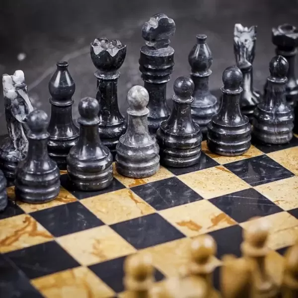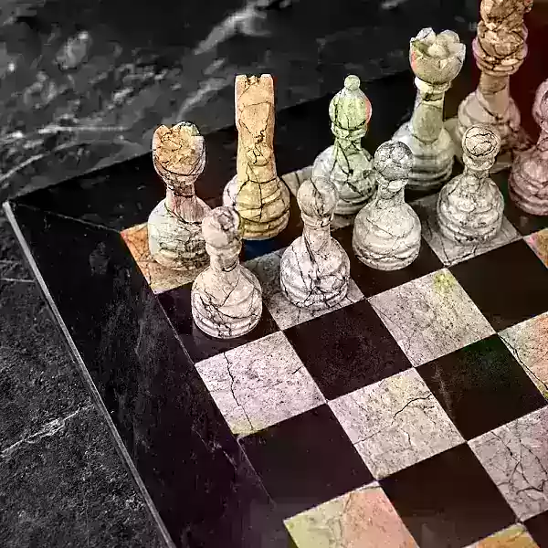 10see itmarble échecs les ensembles de luxe dégagent, bien qu'ils nécessitent une manipulation minutieuse en raison de leur fragilité. Les riches couleurs et les veines du marbre peuvent parfois se mélanger avec la planche, mais l'ensemble d'Italfama en résout avec la pierre rose et noire bien contrôlée. Bien que la palette noire et rose idéale ne soit pas actuellement disponible aux États-Unis, les acheteurs britanniques peuvent profiter de cet ensemble visuellement distinctif et chaleureux.