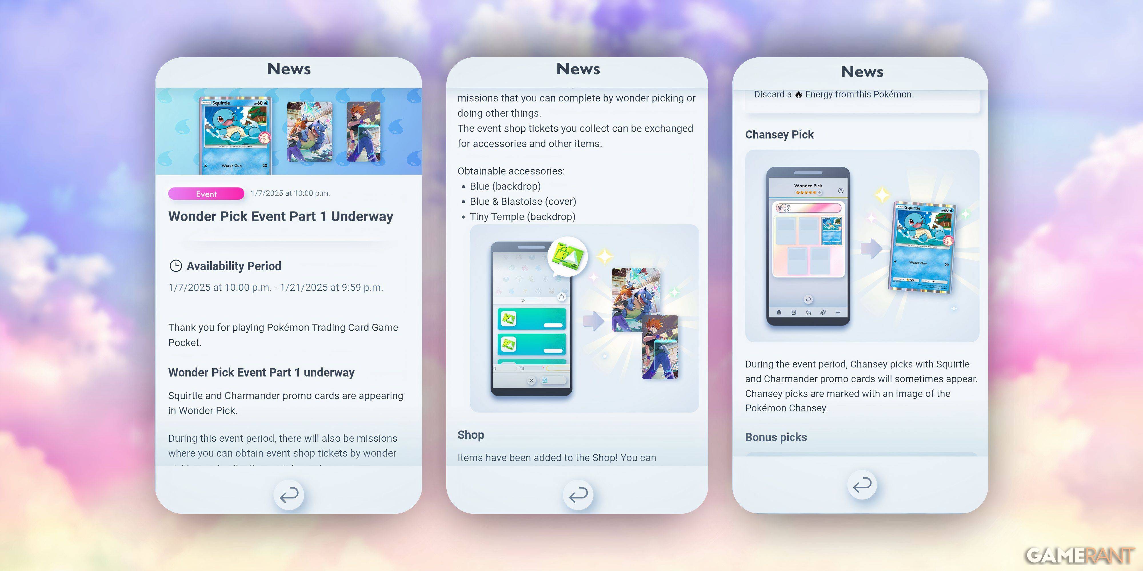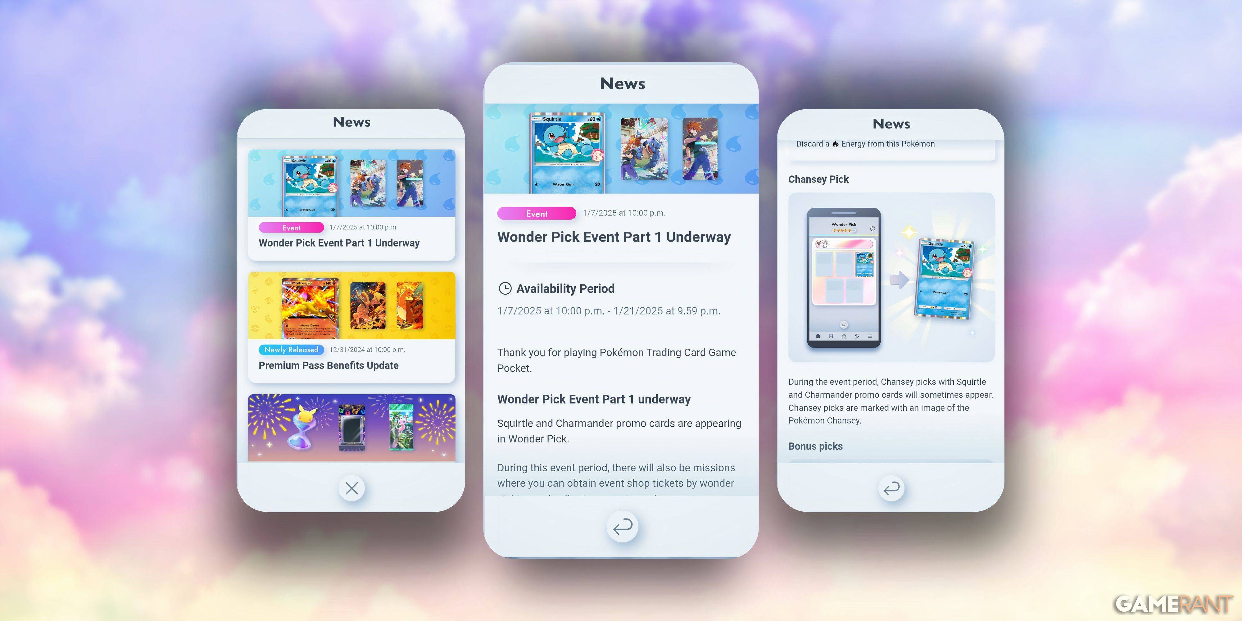 Pokemon Pocket's January Wonder Pick Event brings two new Promo-A cards: Charmander (P-A 032) and Squirtle (P-A 033), boasting updated art while retaining original stats and moves. This event also offers themed accessories obtainable via event shop tickets earned through completing missions. Let's dive into the details of this exciting two-part event.