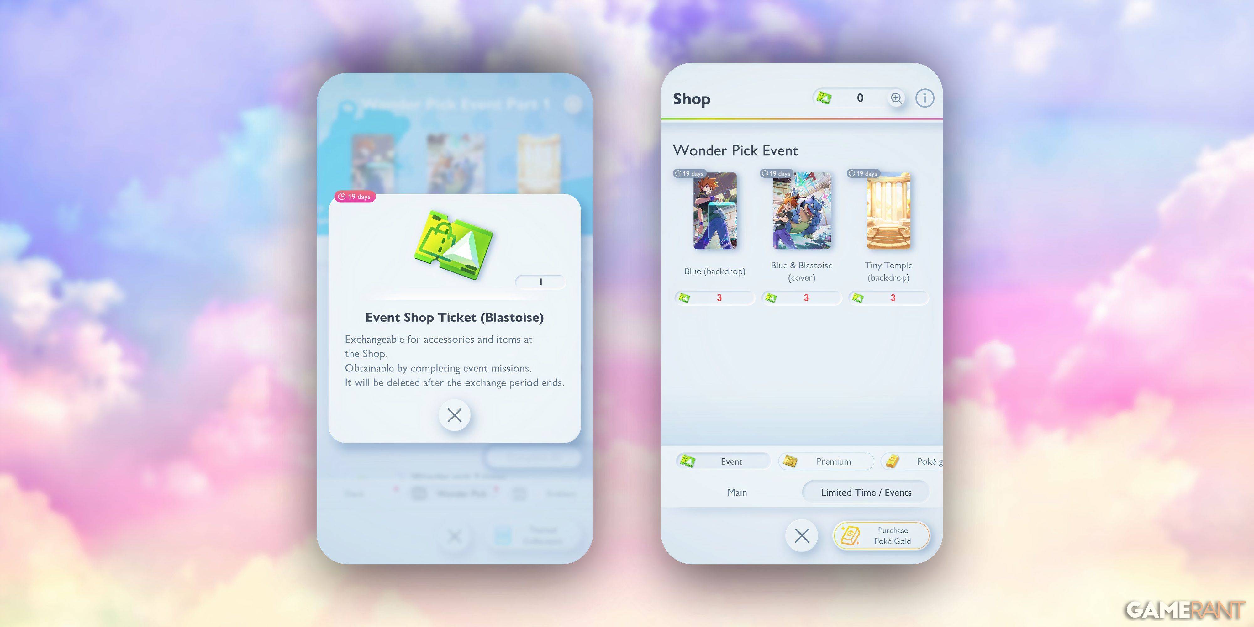Five missions reward players with Blastoise-themed Event Shop Tickets: