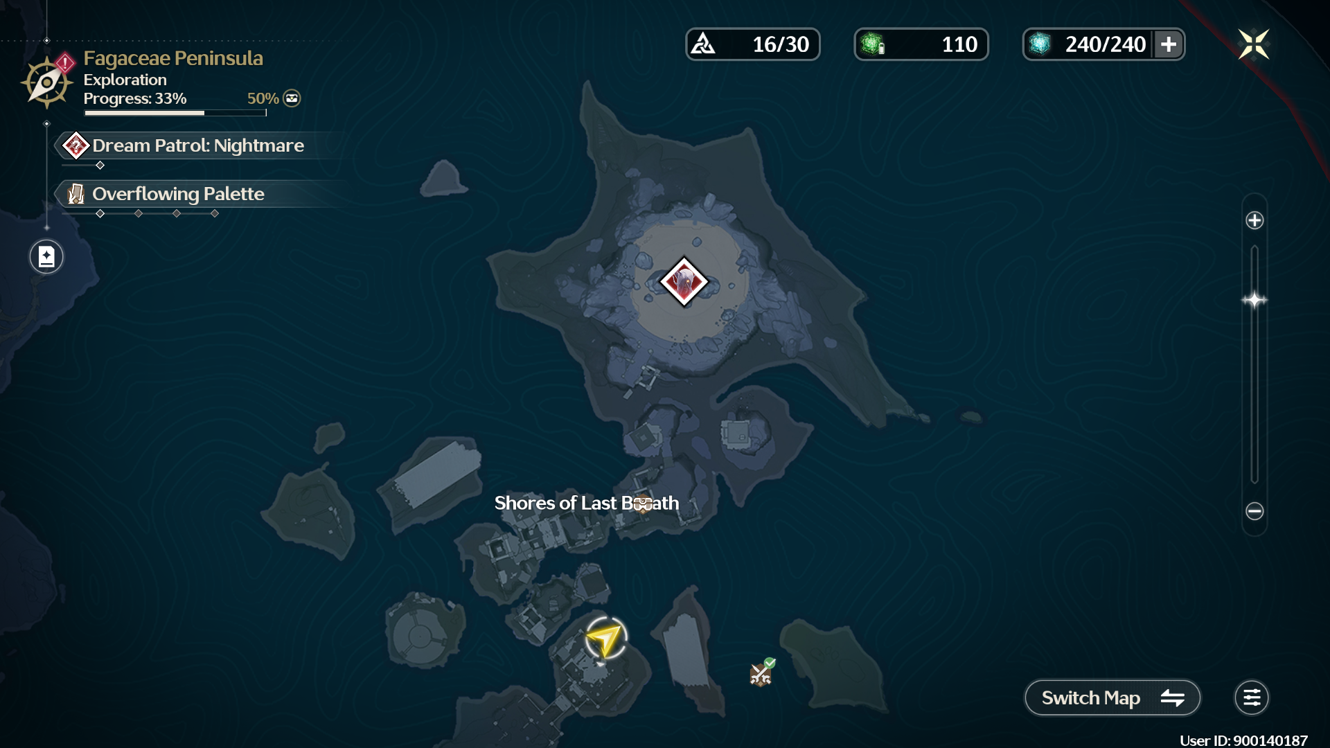 Secondly, you need to uncover all the Dream Patrols scattered throughout the Shores of Last Breath. Simply locating these patrols and having them appear on your map is sufficient; you don't need to complete them. Once you've discovered all the patrols, a notification will inform you that Nightmare Tempest Mephis is now available, and you can engage it at the location shown in the image above.