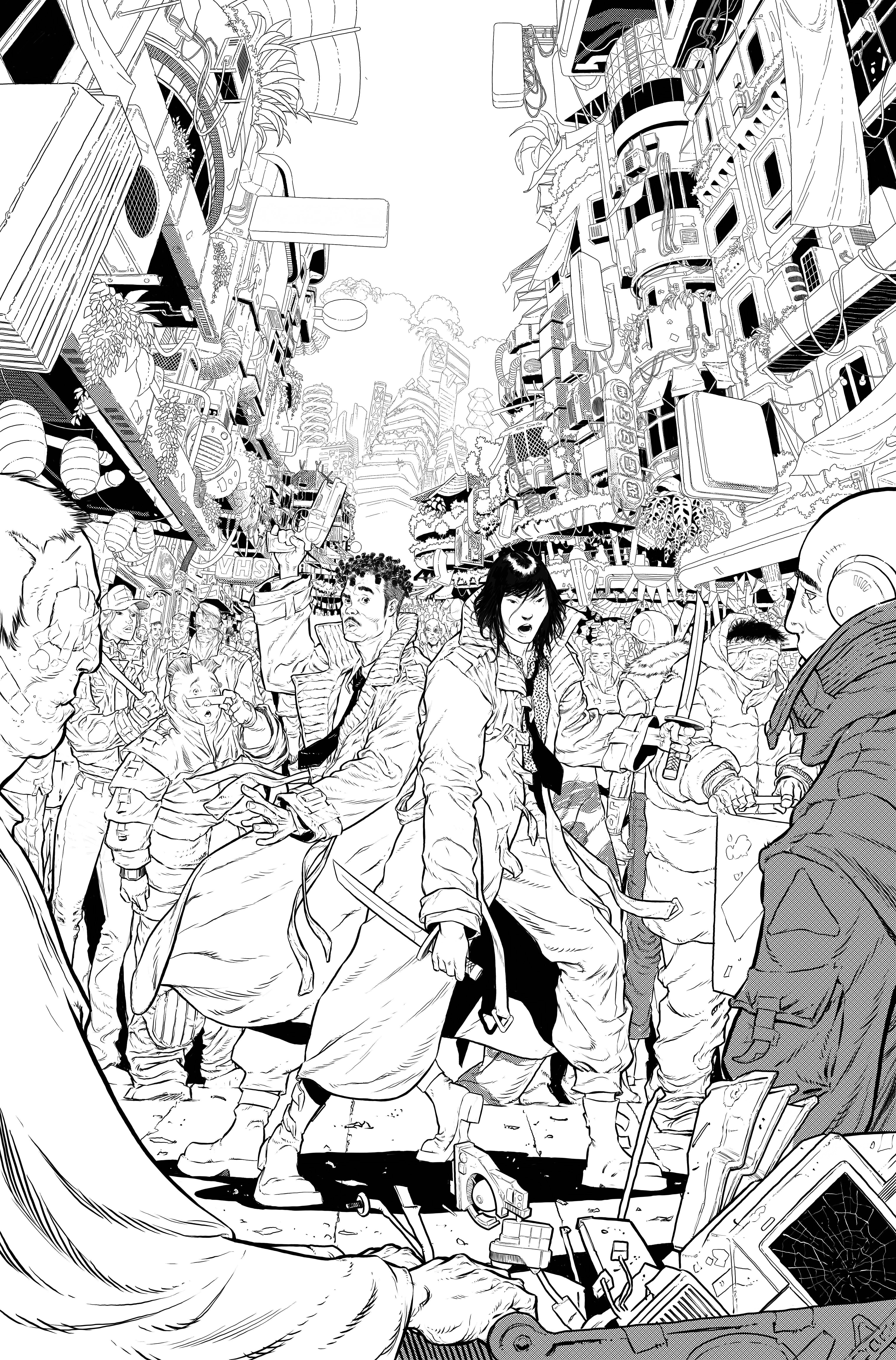 "Na verdade, eu tinha um objetivo pessoal de não iterar no anime que já foi inspirado pelo Blade Runner. Como crise de bubblegum ou psicopass", diz Brown. “Quando você escreve cyberpunk, geralmente está refletindo como acha que seu próprio ambiente entrará no futuro (e é por isso que LA tem um tema dos anos 80 e o medo de o Japão se tornar uma superpotência da série original). Então, eu queria refletir sobre os medos e esperanças da sociedade do Japão hoje. E o que daria errado ou certo se as pessoas perigosas tivessem o seu caminho.”
