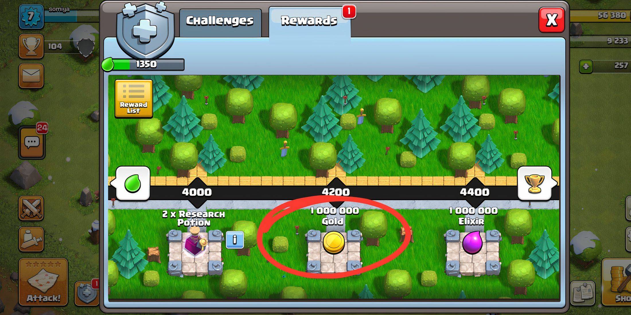 В «Clash of Clans» игроки могут выполнять активные задания и получать награды в виде золотых монет. Эти задачи включают в себя разрушение зданий в бою, модернизацию зданий и зарабатывание звезд. Чтобы получить доступ к этим испытаниям, нажмите на значок щита в левом нижнем углу экрана.