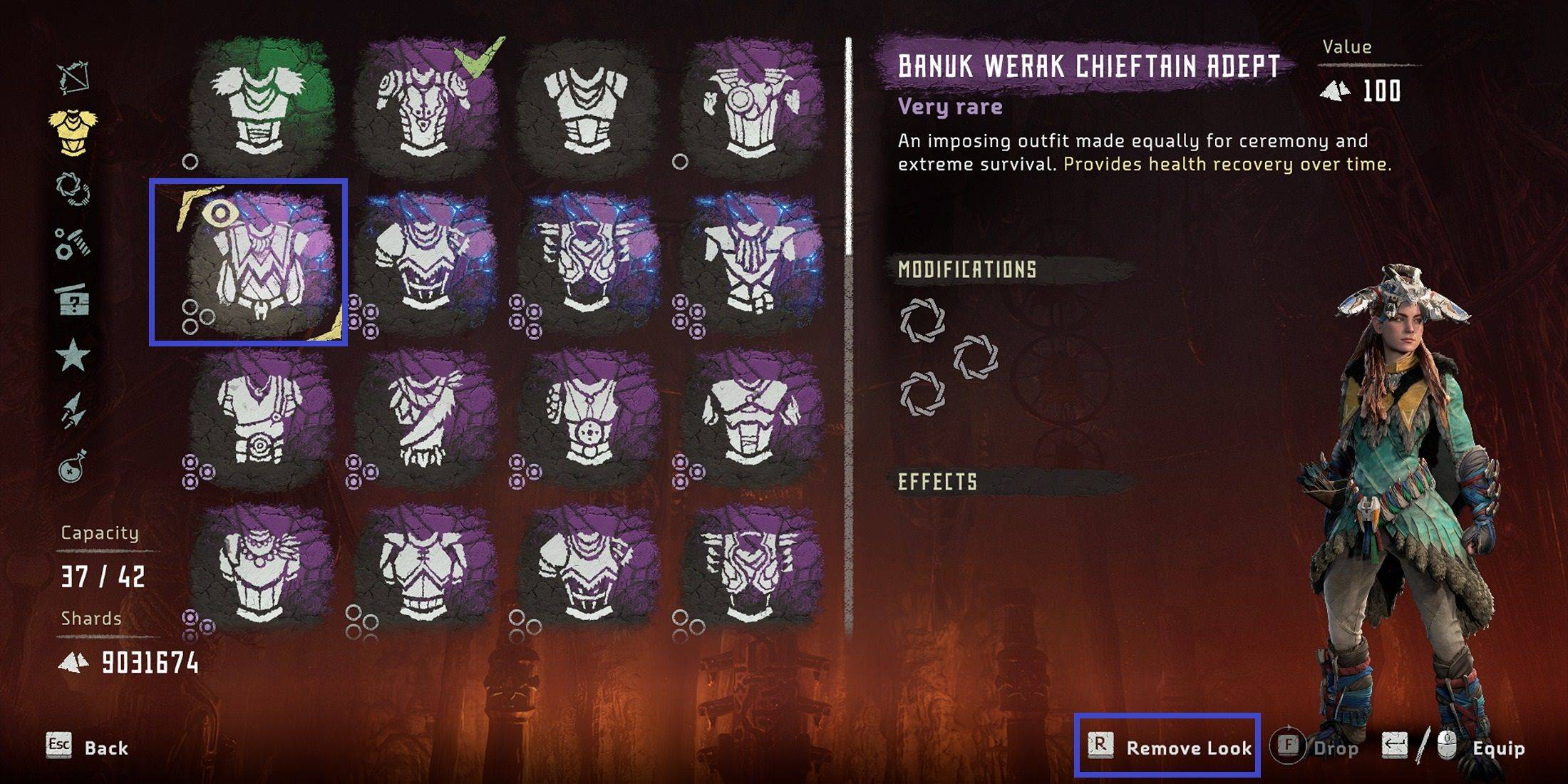 Оставьте желаемый наряд (оптимизация статистики с помощью плетения). Используйте функцию Transmog, чтобы применить внешний вид одного из трех нарядов Banuk Werak. Хотя они не предлагают дополнительной статистики, они обеспечивают пассивное исцеление после получения урона.