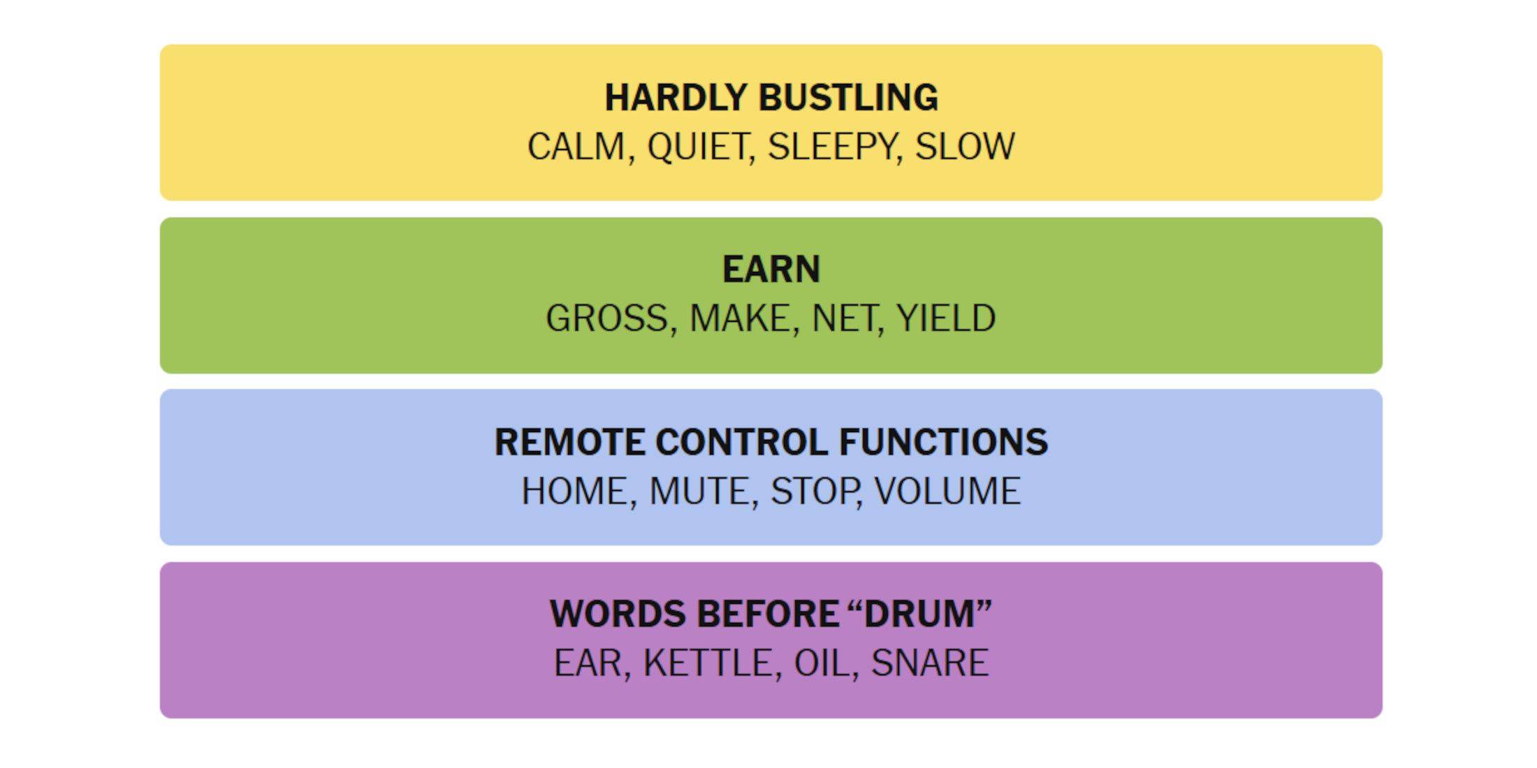 Подсказка: За каждым словом может следовать определенное четырехбуквенное слово, образуя общие составные слова.