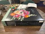 花束有各種各樣的花朵:雛菊,玉米花,桉樹,玫瑰花,玫瑰,蘭肯蘭花,蘭花蘭花蘭花,wathlily dahlia和campanula。這些說明包括有關英語,法語和西班牙語的每朵花的有趣事實。例如,Cymbidium Orchid描述指出了其培養的曆史可以追溯到孔子的時間。