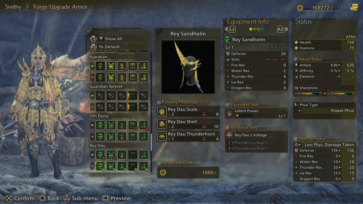 - Rey Sandhelm:Rey Dau Scale X2,Rey Dau Shell X2,Rey Dau Thunder Horn X1