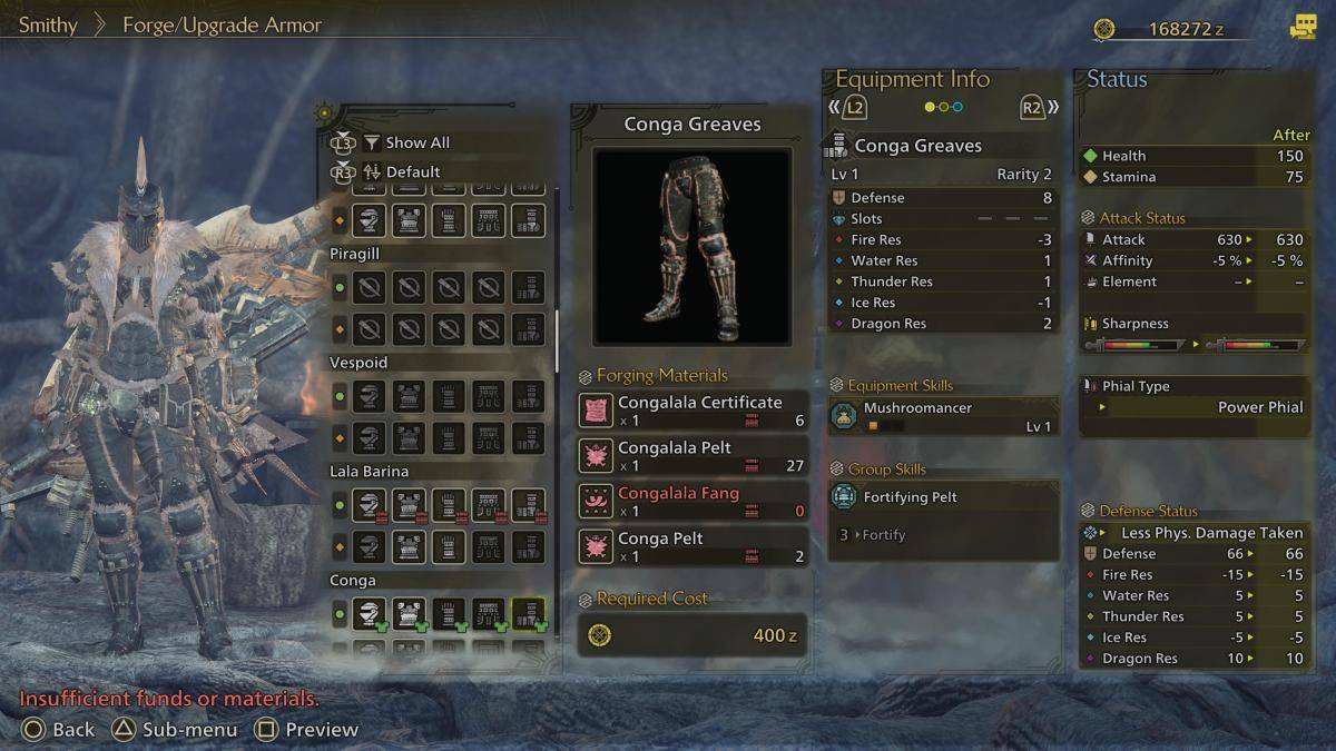 - Conga Greaves:Congalala證書X1,Congalala Pelt X2,Congalala Fang X1,Conga Pelt X1