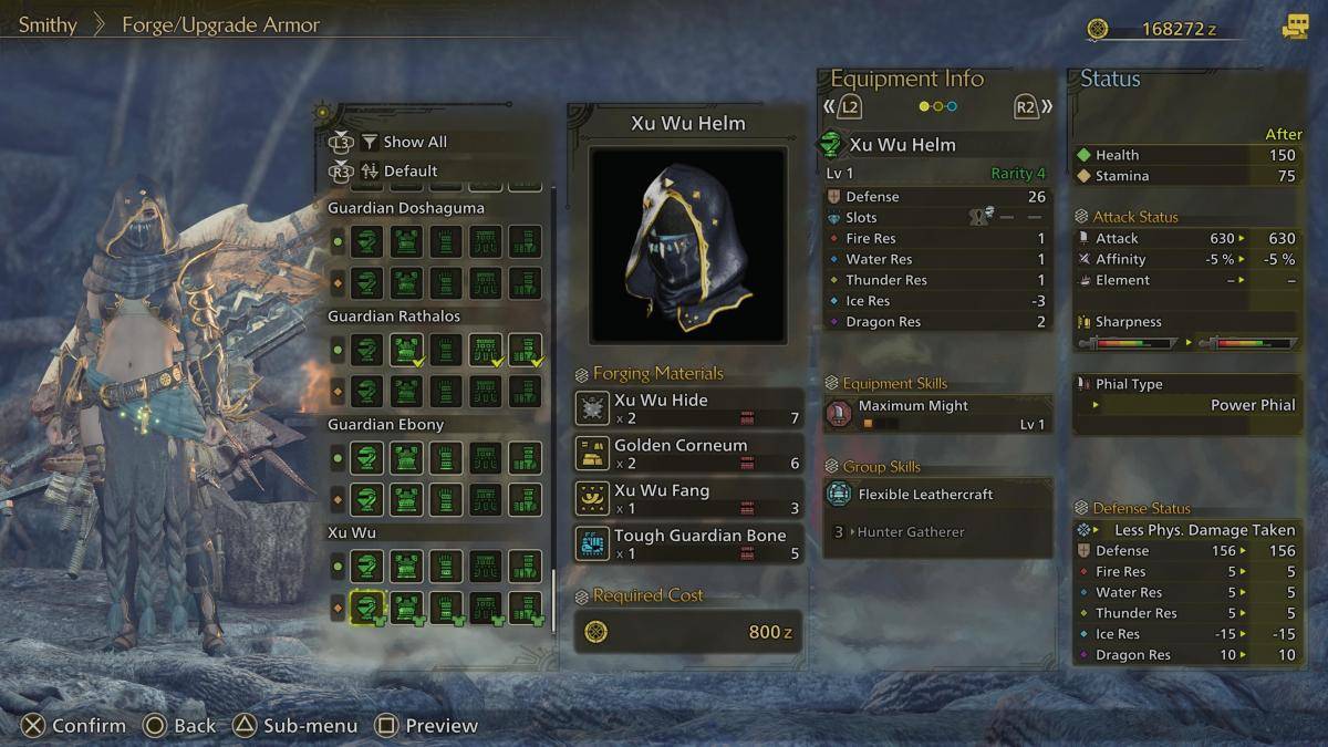 - Xu Wu Helm:Xu Wu Hide X2,Golden Corneum X2,Xu Wu Fang X1,堅韌的監護人骨x1