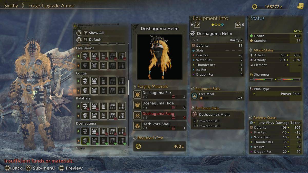 - Doshaguma Helm:Doshaguma fur X2,Doshaguma hide X2,Doshaguma Fang X1,Herbivore Shell x1