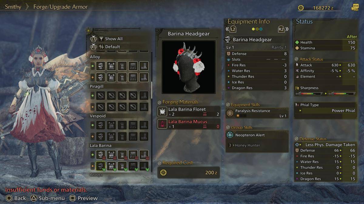- Barina Coil:Lala Barina Mucus X1,Lala Barina Claw X1,Lala Barina Stinger X1