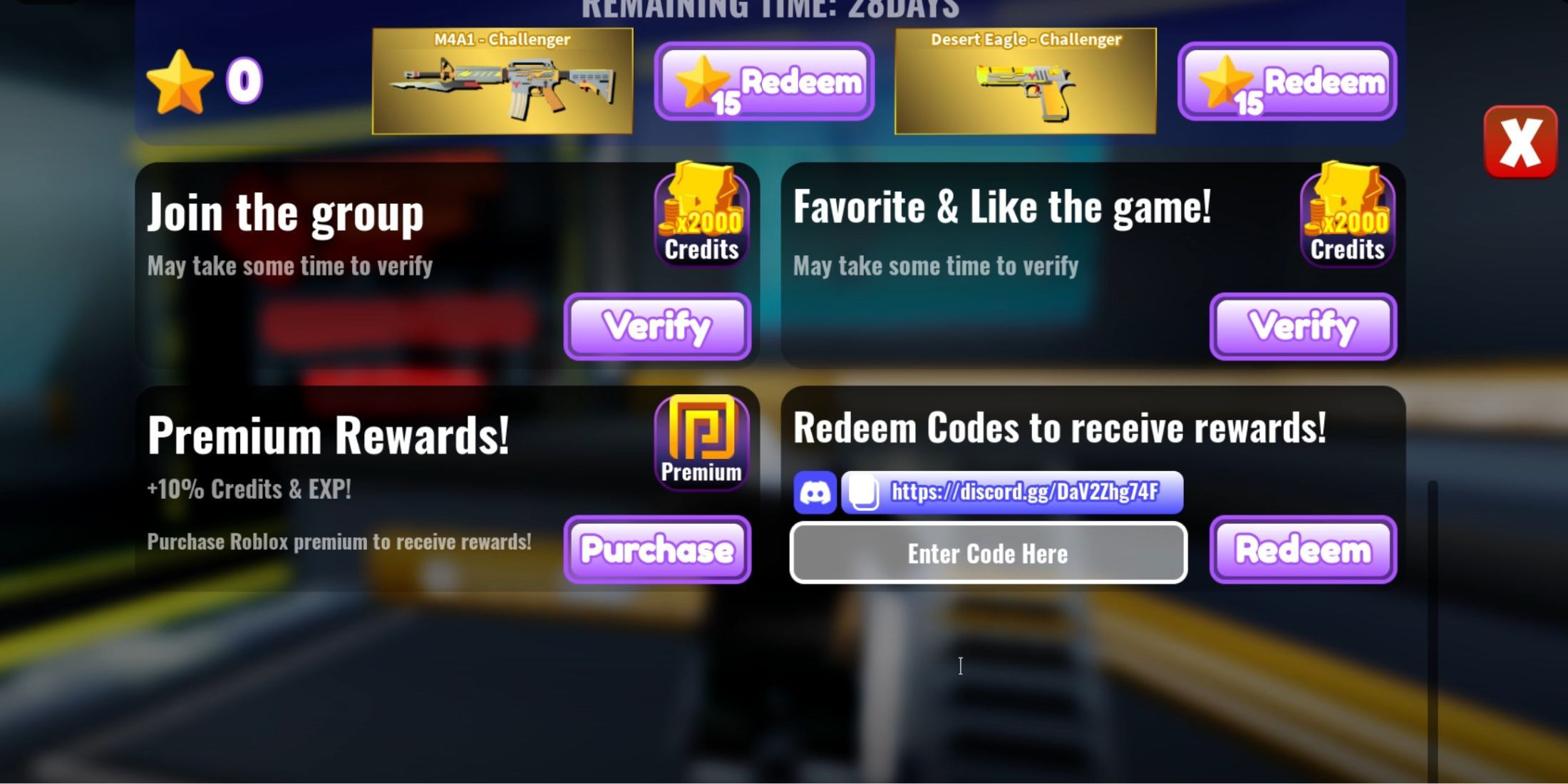 >滚动到奖励菜单的底部。 您会找到带有输入字段和紫色“赎回”按钮的赎回部分。> enter(或粘贴)从上面列表中的工作代码。