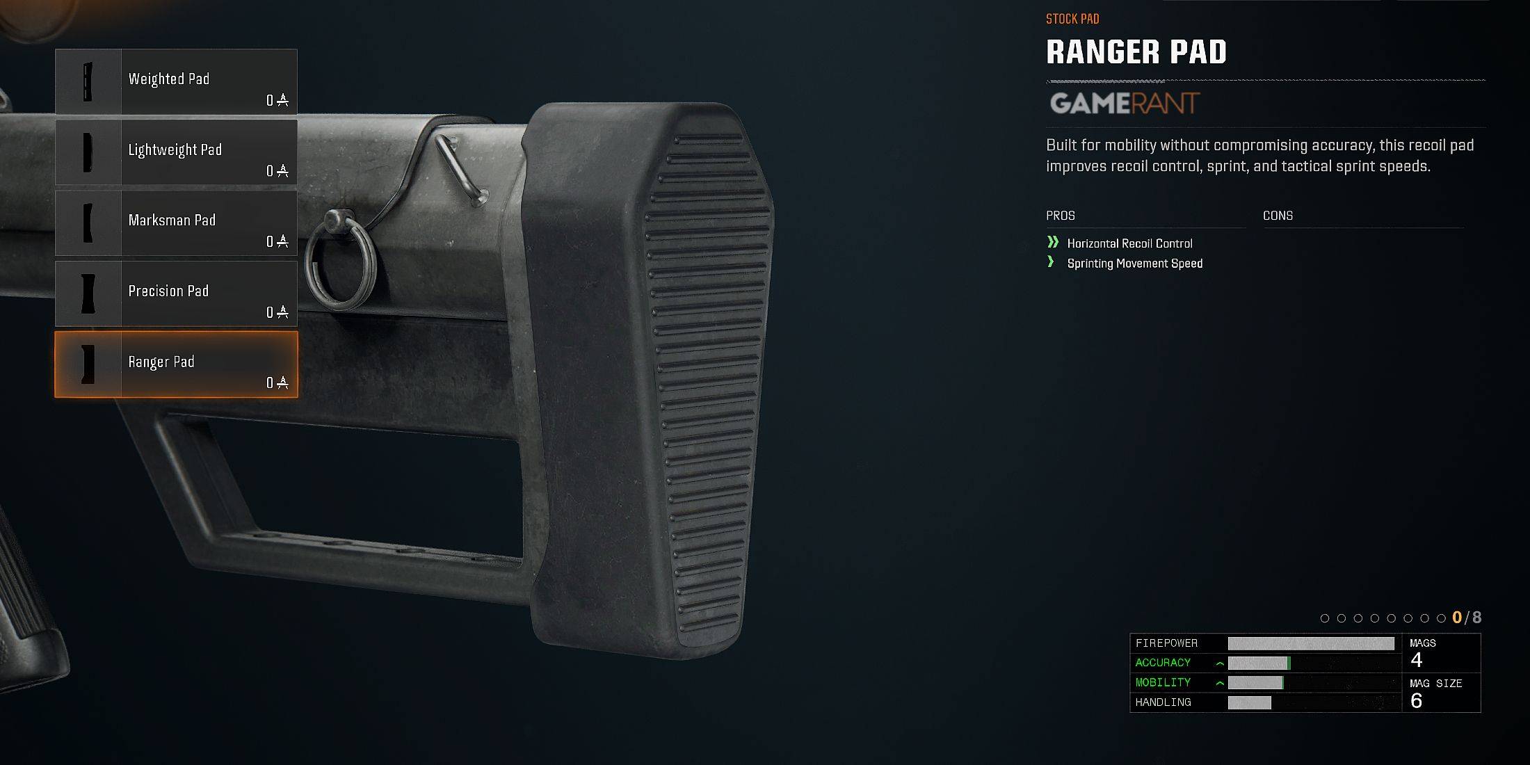 | 轻量级垫 | 减少瞄准空闲摇摆 | - |